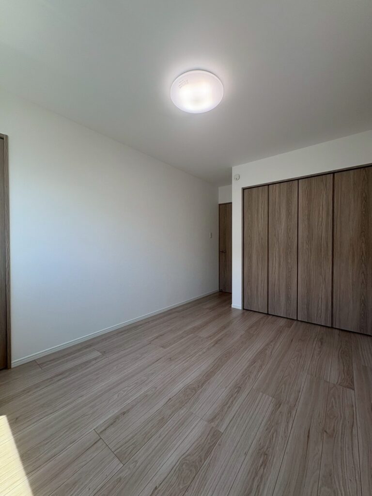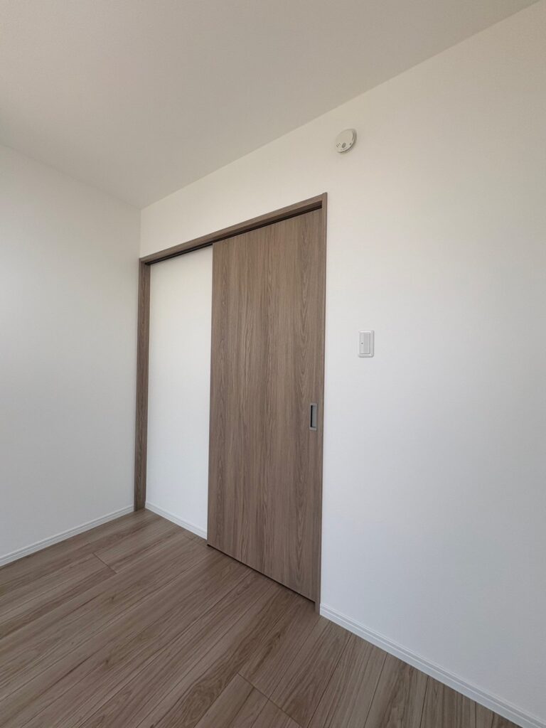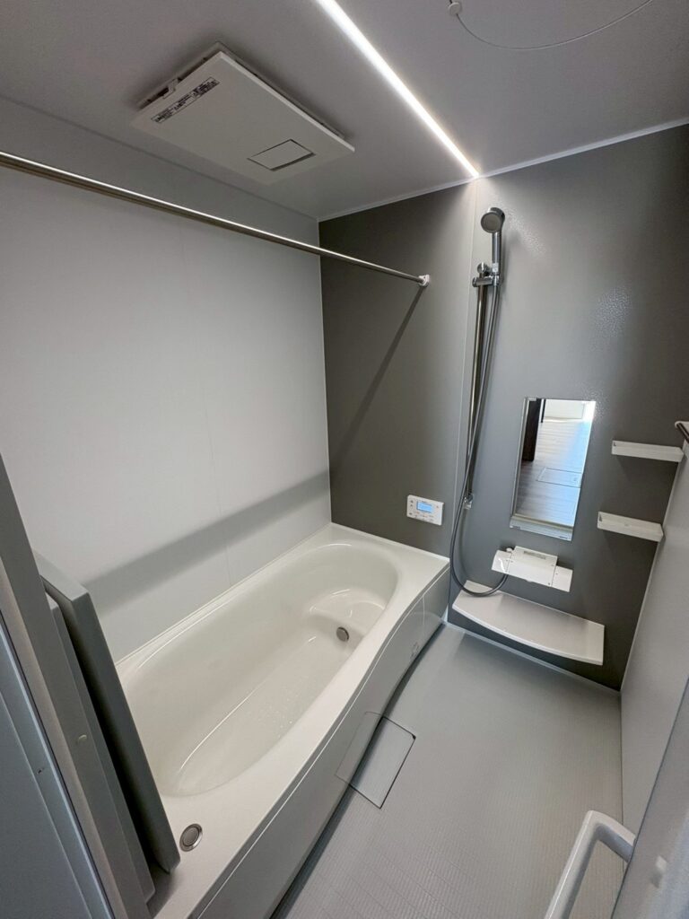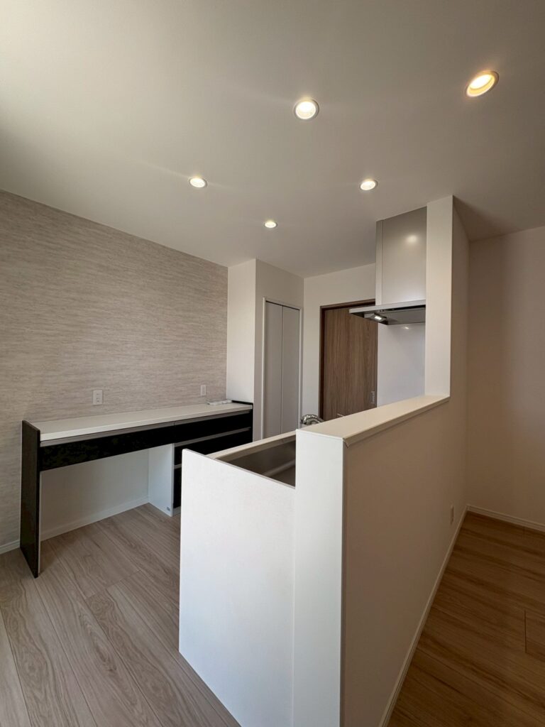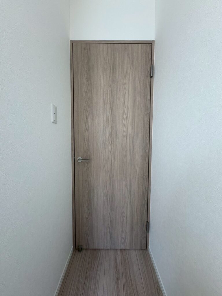 ドアを開けるとスッキリしたデザインの建具が並び、キッチンやお風呂も同じメーカーで揃っているから統一感がバッチリ👌
