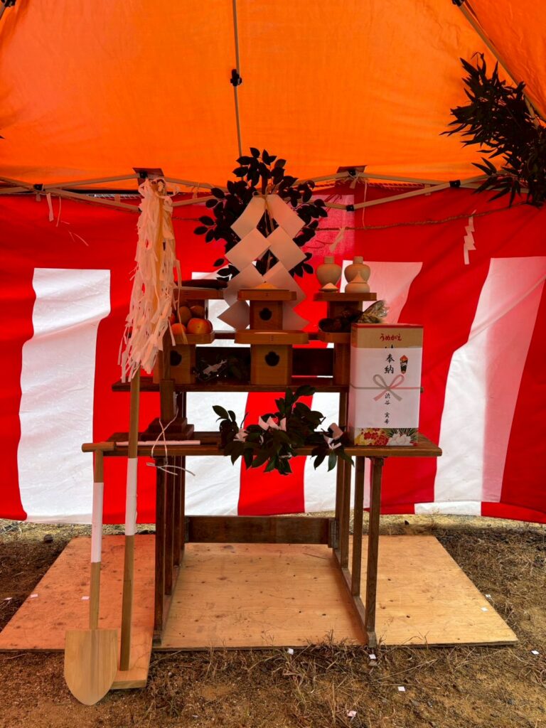 地鎮祭とは、お家を建てる前に土地の神様にご挨拶をして、