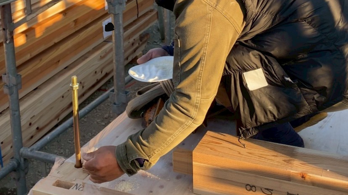 後光のまばゆい光の中、柱がどんどん立ち上がり“お家”が目の前で形になっていく様子に、笑顔😊