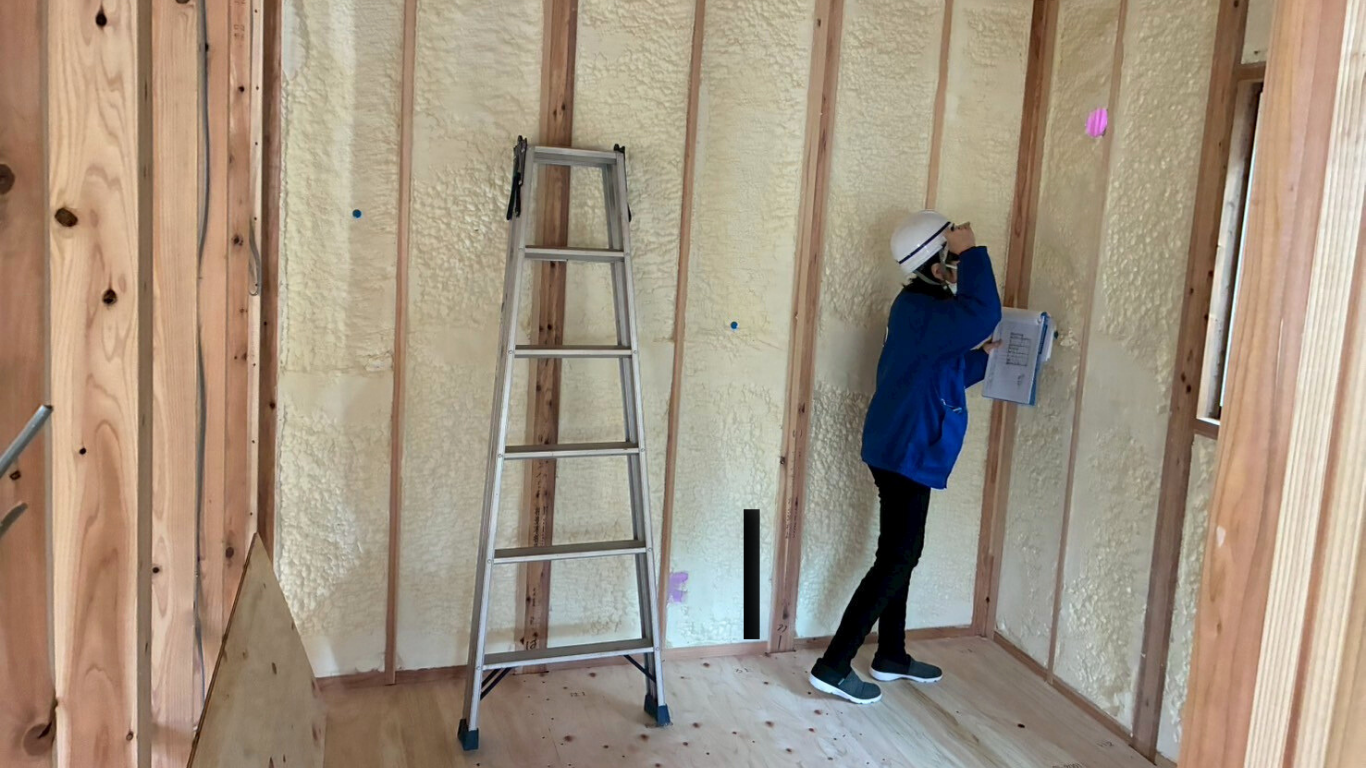 柱や梁の組み方、壁の下地、断熱材の施工状態まで、細かくチェックされました。