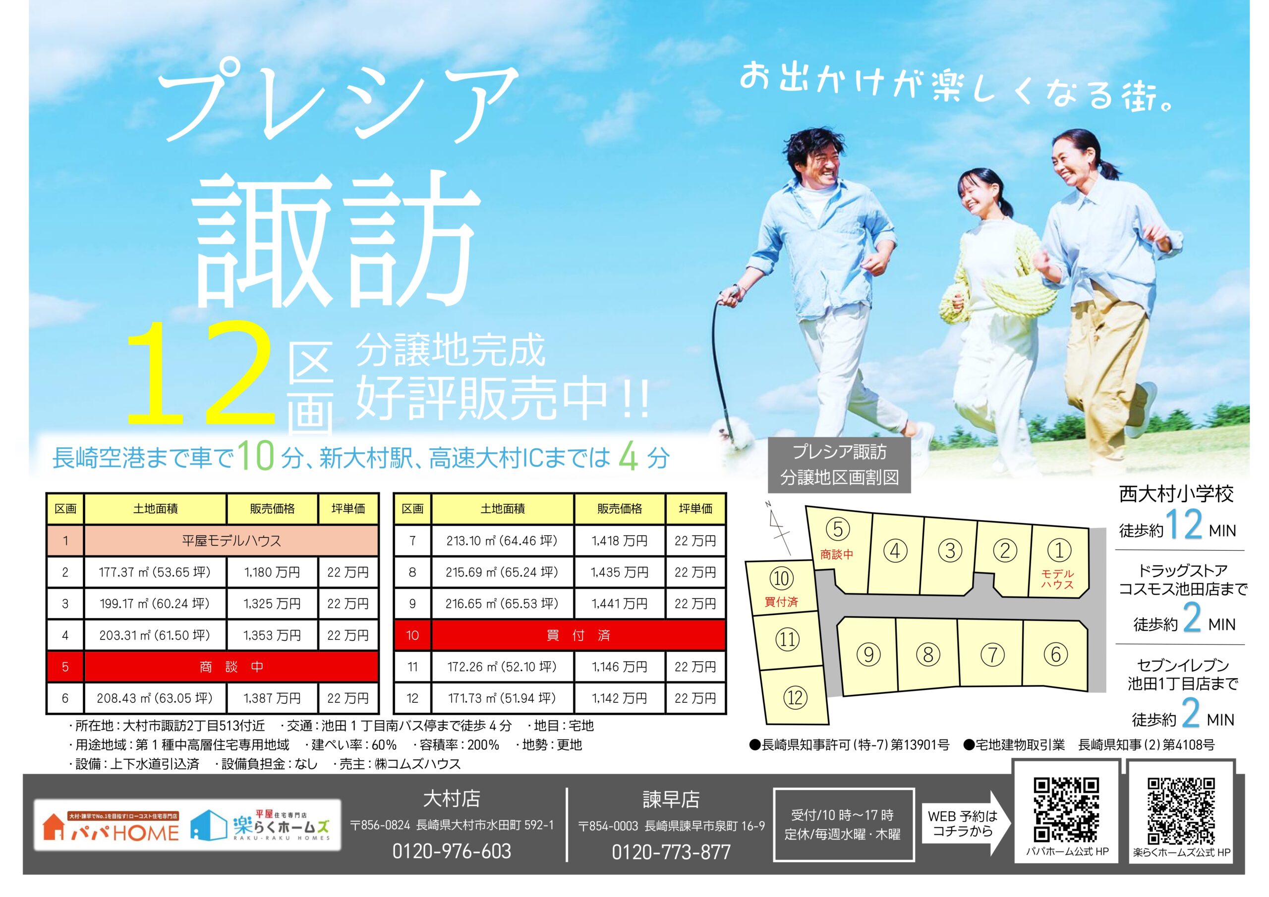 西大村小学校まで徒歩12分で通学も安心♬徒歩2分圏内にコンビニエンスストア・ドラックストアの好立地★設備負担金・仲介手数料なし!!